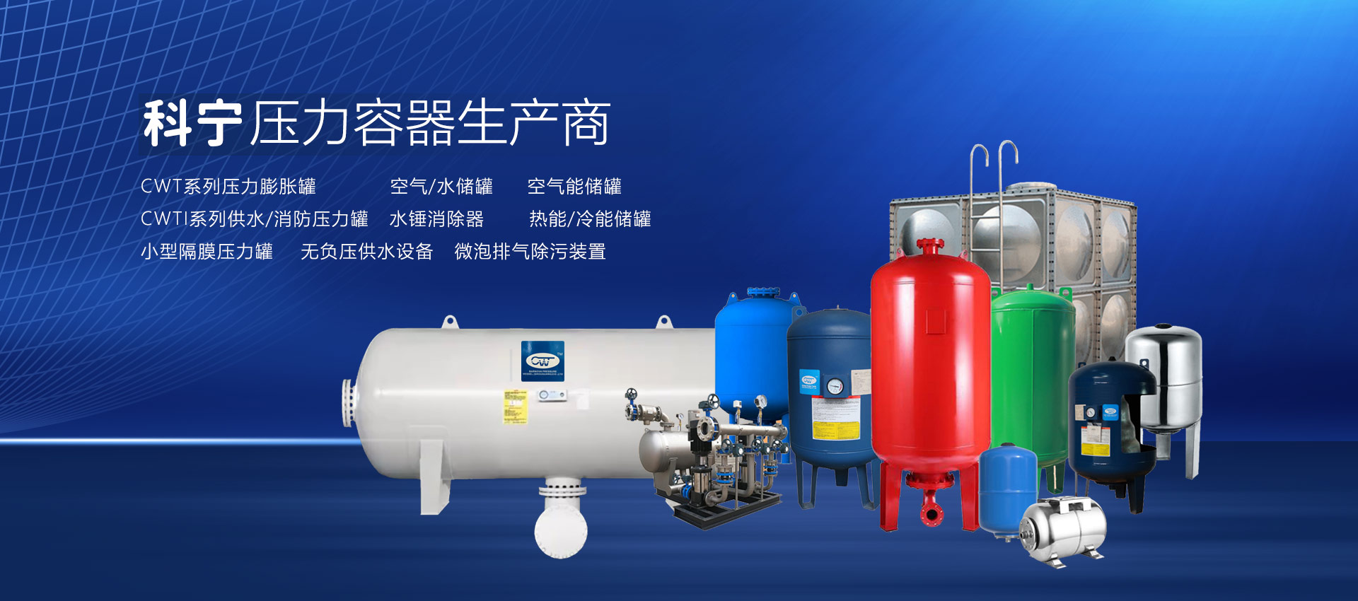 壽光市科寧壓力容器(壽光)有限公司是專業從事壓力膨脹罐、空氣/水儲罐、空氣能儲罐、水錘罐、熱能/冷能儲罐、無負壓供水設備穩流罐、耦合罐的研發、制造、加工、銷售、維修;經營國家允許范圍內的貨物與技術的進出口業務。材質有碳鋼、不銹鋼、雙相鋼等。產品主要用于:恒壓變頻供水設備、無負壓供水設備、供暖系統、太陽能、地暖、消防、空氣能、空調、大型供水系統(防水錘)。起到節能、穩壓、防水錘、蓄能、環保等作用,延長水泵和管道系統的使用壽命,確保供水系統穩定運行...